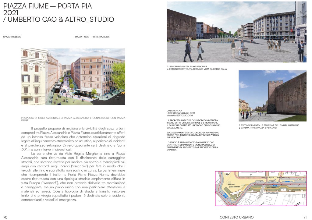 Purtroppo, però, da ottobre ad oggi, (siamo quasi a metà maggio), nulla è stato fatto per portare avanti il progetto in termini definitivi o, almeno, sino al progetto di fattibilità tecnico-economica, condizione necessaria entro dicembre 2022 per impegnare i fondi e quindi procedere alle fasi successive di progettazione e realizzazione. Lo stesso rapporto virtuoso con il Dipartimento DIAP della Sapienza e Legambiente sembra accantonato. Non c’è stata alcuna comunicazione ufficiale e la sensazione è che l’Amministrazione municipale abbia modificato i suoi programmi, indirizzandosi su altre priorità senza avere più intenzione di portare avanti il progetto. Nel frattempo, una parte dei disegni del progetto preliminare sono stati presentati nella mostra Riscatti di città, (15/04 – 29/5 2022) presso Palazzo Merulana e il progetto è noto agli assessori di Roma Capitale Veloccia, Segnalini e Patanè. Abbandonare questa occasione di un progetto pilota di Isola Ambientale, congruente sia con il PUMS (Piano Urbano della Mobilità Sostenibile) che con il PGTU (Piano Generale del Traffico Urbano) e coerente con i nuovi orientamenti di mobilità dolce e rigenerazione urbana, sarebbe certamente una occasione persa.